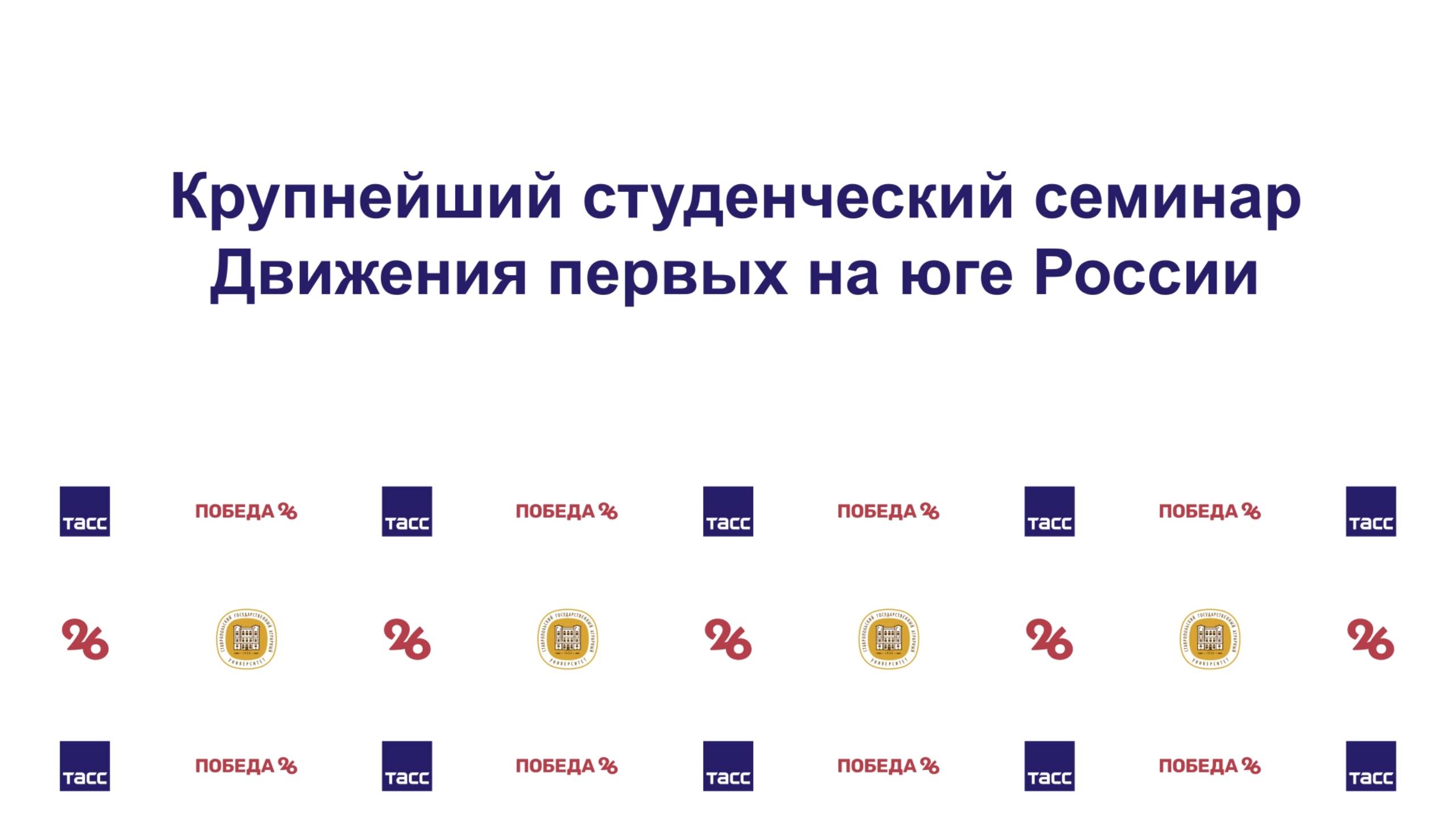 О проведении и перспективах семинара, его участниках из субъектов СКФО, ЮФО и новых регионов России расскажут: Георгий Головин, председатель Совета Движения первых Ставропольского края; Сергей Ногин, проректор по молодёжной политике, воспитательной работе и профориентации СтГАУ. Трансляция будет доступна в группе пресс-центра ТАСС во ВКонтакте и на Рутуб, Ютуб-каналах «Победа26».