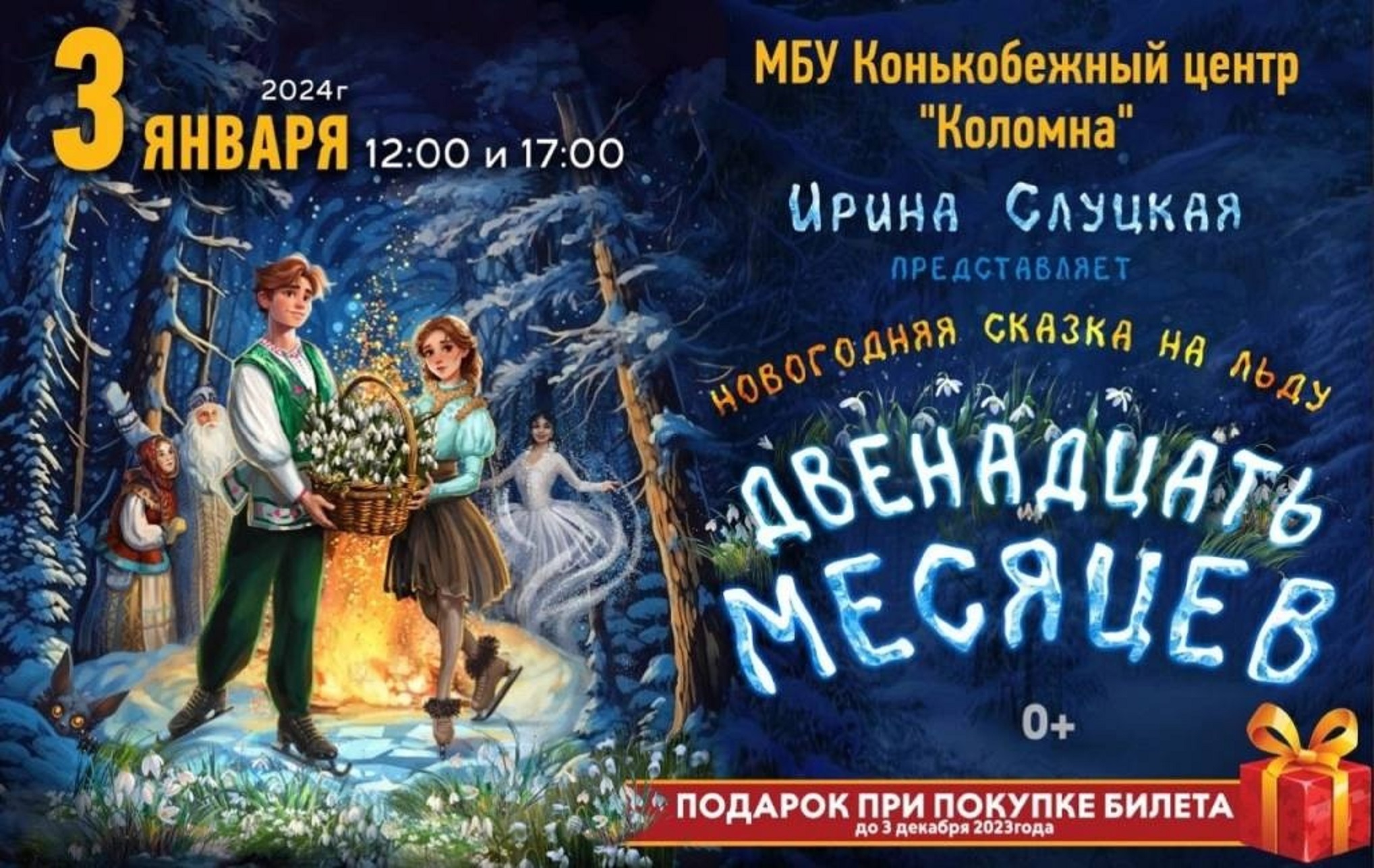 Зимняя сказка наяву: ледовое шоу Ирины Слуцкой «Двенадцать месяцев» покажут на глади лесного озера в Доброграде. Семикратная чемпионка Европы, двукратная чемпионка мира, серебряный и бронзовый призер Олимпийских игр и продюсер ледовых шоу Ирина Слуцкая приглашает всей семьей насладиться единственным в России ледовым шоу мирового уровня с участием лучших фигуристов страны. Семейная сказка «Двенадцать месяцев» — волшебное ледовое представление, которое не оставит равнодушным ни взрослых, ни детей. Зрители попадут в таинственную атмосферу новогодней ночи и познакомятся с чудесами всех времен года. Сюжет сказки знаком всем: каждый год месяцы идут друг за другом своим чередом, но вот однажды все они встретились вместе, чтобы помочь доброй девочке найти весенние подснежники для королевы. Для гостей зимнего театра на льду представление, безусловно, станет вечером сюрпризов: атмосфера настоящего озера в окружении волшебного зимнего леса подарит незабываемые впечатления. Ледовое шоу в Доброграде станет четвертым по счету, но впервые артисты показывают не просто отдельные номера, а настоящую волшебную сказку. Наступивший новый год объявлен в России годом семьи, а Доброград, несомненно, является городом для счастливых семей. Ледовый спектакль — это в первую очередь атмосфера, сказочные ощущения от мастерства фигуристов на открытом воздухе, от красоты катания, света, звука, удивительной доброградской природы. Но и это еще не все. Одной из главных звезд шоу станет исполнительница роли Волшебницы Зимы — двукратный серебряный призер Олимпийских игр, двукратная чемпионка мира, бронзовый призер чемпионата мира, двукратная чемпионка Европы, двукратный призер чемпионата Европы, двукратная чемпионка России по фигурному катанию Евгения Медведева. По отзывам фигуристов, уже выступавших в Доброграде, здесь, на натуральном льду, они заряжаются такой энергетикой, о которой на крытых катках не приходится и говорить. «Мы хотим, чтобы с искусством фигурного катания мог соприкоснуться каждый», — говорят организаторы шоу. В том числе и по этой причине 10 февраля в Доброграде пройдут сразу два спектакля: дневной и вечерний. 10 февраля в 16:00 и в 19:00. Ледовый спектакль создан для всей семьи и рекомендован для семейного просмотра с детьми (0+).