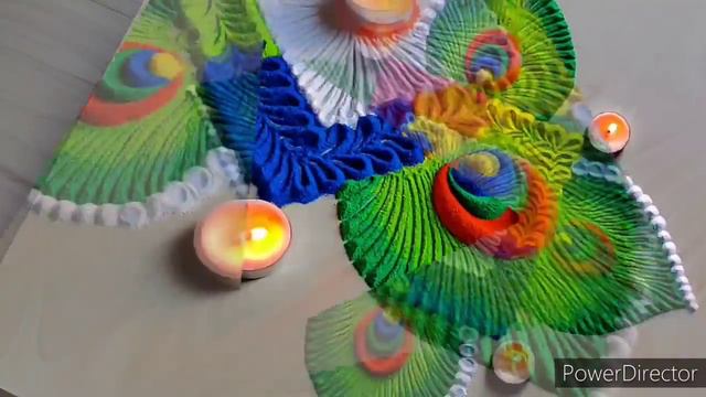 #1407 peacock rangoli designs for diwali Deepavali deepam rangoli