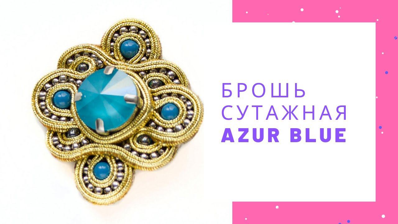 Брошь сутажная золотая с голубым Azur Blue NataliaLuzik