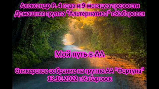 Александр Р. Мой путь в АА. 4 года 9 мес.тр.д.гр. АА "Альтернатива" Хаб-ск, 13.10.22