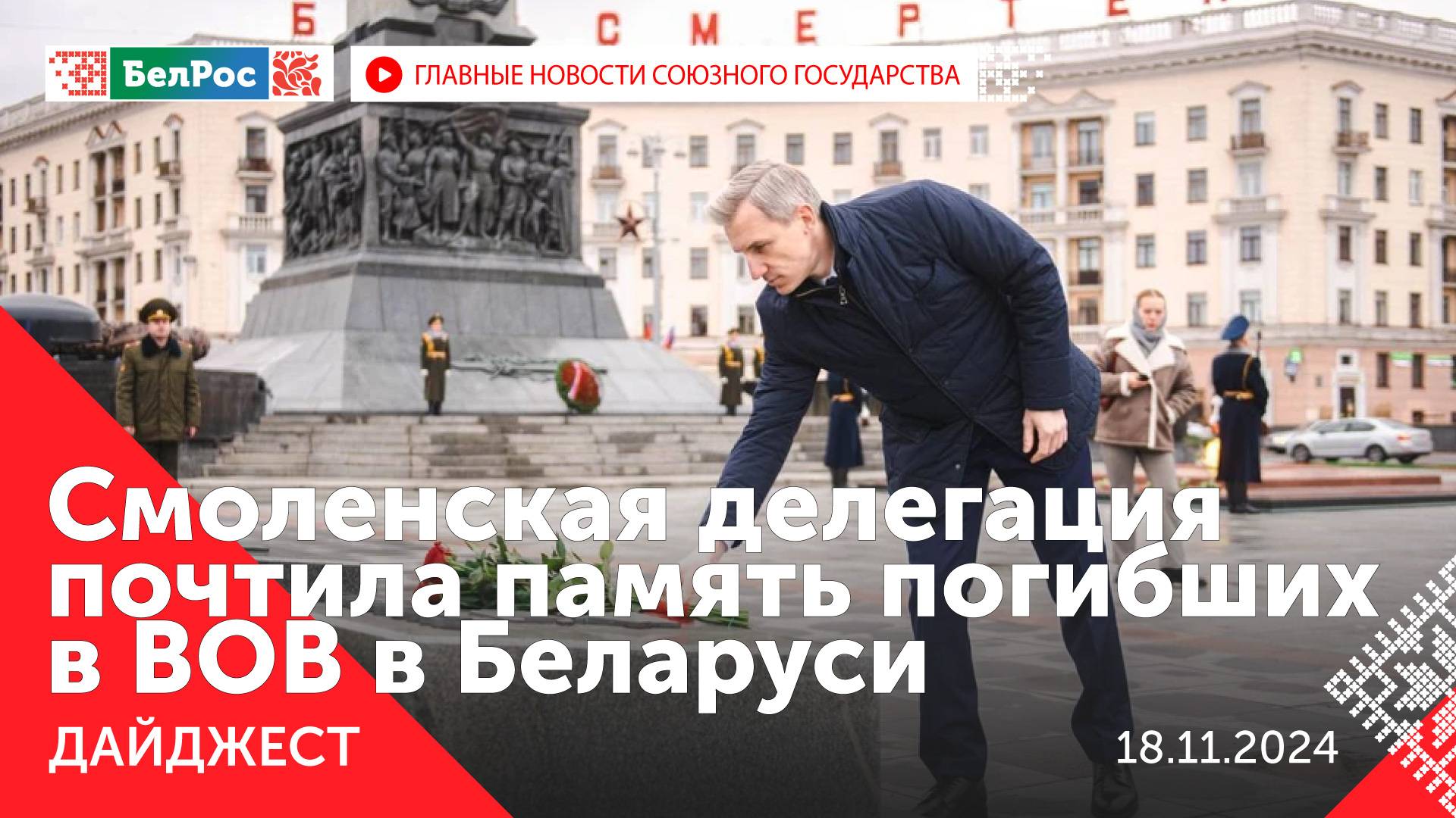 *Главное на 18 ноября 21:00* Закадровый текст озвучивает *ИИ Кирилл* - О восстановлении Запорожской области доложил губернатор Евгений Балицкий Владимиру Путину. - Александр Лукашенко: товарооборот между Беларусью и Смоленском нужно вернуть на уровень в 5 млрд долларов. - Смоленская делегация в Беларуси почтила память погибших в ВОВ. - Саммит G20 стартовал в Бразилии. - Александр Лукашенко на фестивале-ярмарке "Дажынкi-2024" наградил лучших аграриев Могилёвской области. - Игорь Краснов привлёк внимание участников климатической конференции к экологическим преступлениям. - Вольфович: за год в Беларуси зафиксировали 50 случаев гибели мигрантов, которых подбросил Евросоюз. - Евразийский конгресс народной дипломатии объединил участников из России, Индии, Турции, Казахстана. - В Сириусе завершились соревнования для ветеранов СВО. - Центр технической поддержки "БЕЛАЗ" появился в Мурманской области. Смотрите главные новости Союзного государства на телеканале БелРос. Ссылки на наши соц. сети Сайт: http://belros.tv/ Telegram: https://t.me/belrostv Одноклассники: https://ok.ru/group/55657426976918 ВКонтакте: https://vk.com/belrostv TikTok: https://www.tiktok.com/@belros_tv?_t=... RuTube: https://rutube.ru/channel/23501830/ Яндекс. Дзен: https://zen.yandex.ru/belrostvv Наши подкасты на Яндекс. Музыке: https://music.yandex.ru/album/25615251 #СоюзноеГосударство #главныеновости #новостисегодня