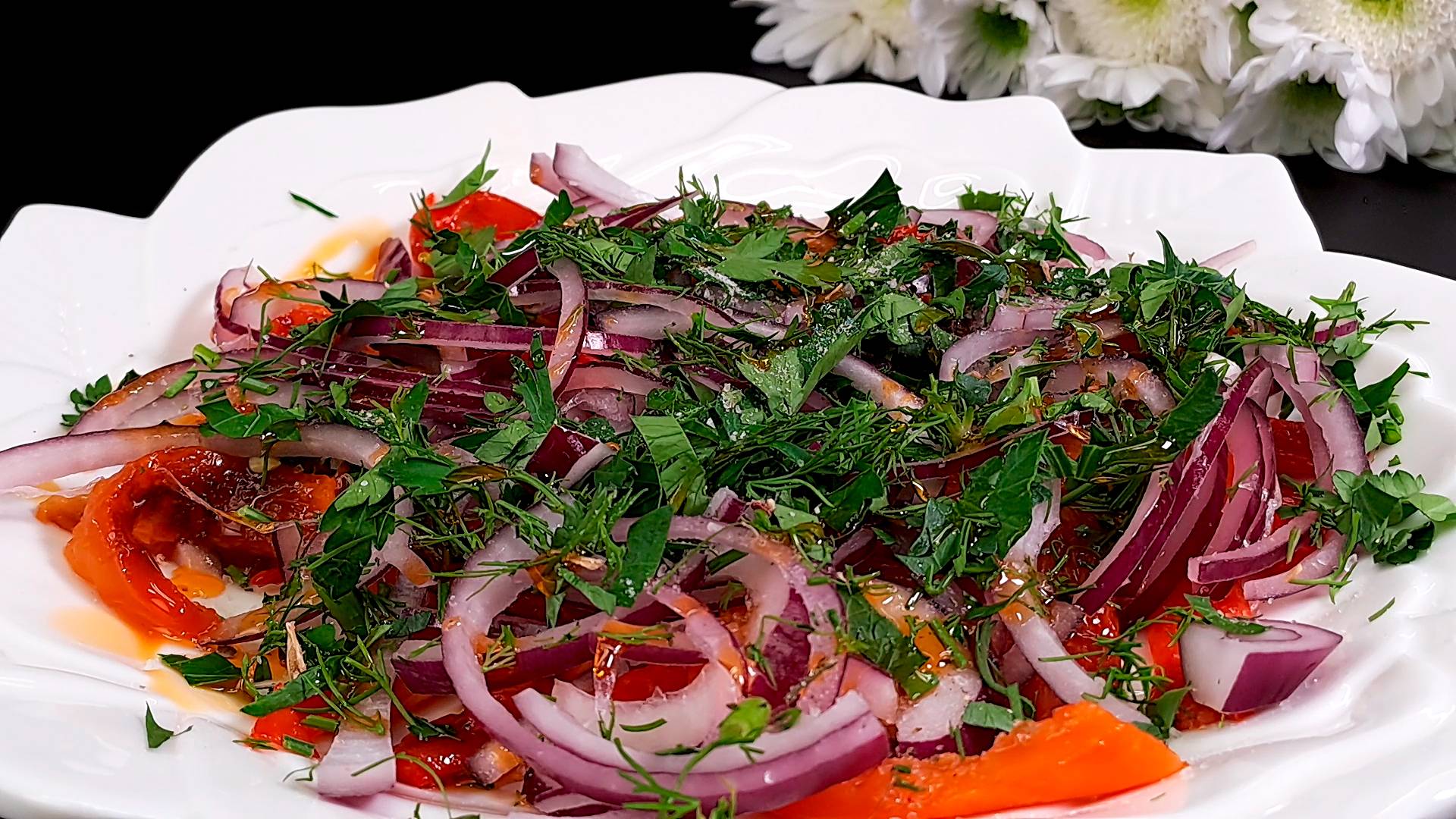 Ингредиенты для рецепта: 4 красных сладких перца. 1 фиолетовая луковица. петрушка. укроп. соль. салатная заправка из оливкового масла и перца чили. Подписывайся на канал и делись видео с друзьями. Также у меня на канале еще очень много вкусных рецептов, и еще больше рецептов ждет вас впереди. Вконтакте - https://vk.com/vkusnierecipe Одноклассники - https://ok.ru/group/70000000861442 Дзен - https://dzen.ru/vkusnierecipes https://dzen.ru/isrecipe Весь музыкальный контент, использующийся в видео на данном канале размещён на основании лицензии Creative Commons 4.0 вариант лицензии CC0 (https://creativecommons.org/licenses/by/4.0/) с медиатеки, где не требуется указания авторства.