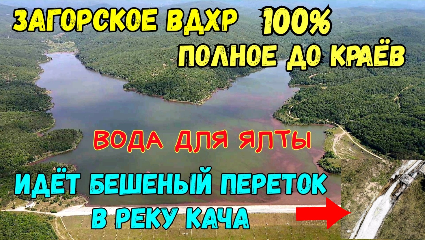 ЭКСКЛЮЗИВ.Крым.ЗАГОРСКОЕ водохранилище ИДЁТ МОЩНЫЙ переток в р.КАЧА.100% наполнение.ПОЛНОЕ до КРАЁВ