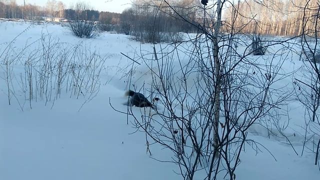 Забавная хаски покоряет сугробы