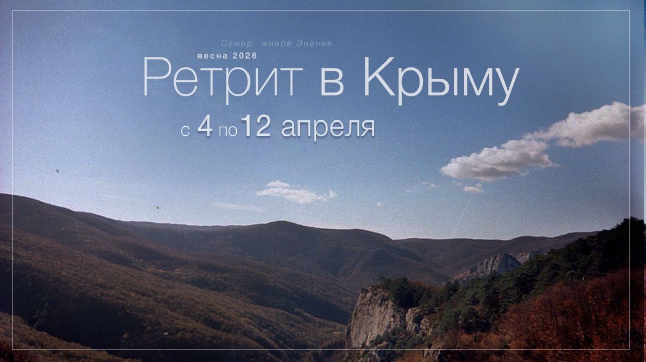 Весенний ретрит в Крыму с 4 по 12 апреля Приехать можно в любые из упомянутых чисел, предварительно заявив о своём приезде По всем вопросам пишите: • vk: vk.com/sashaimore • telegram: t.me/sashaimore Личные сообщения Самиру можно написать: ВК https://vk.com/sammamedov Публичная группа "Самир. Живое знание": ВК https://vk.com/iitsall ТГ канал Наш Простор: https://t.me/+Ac_tOXHVUSdjNjBi Если у Вас появилось желание помочь, прошу воспользоваться следующими реквизитами Сбербанк 4276 4000 7602 3788 #просветление #пробуждение #сатсанг