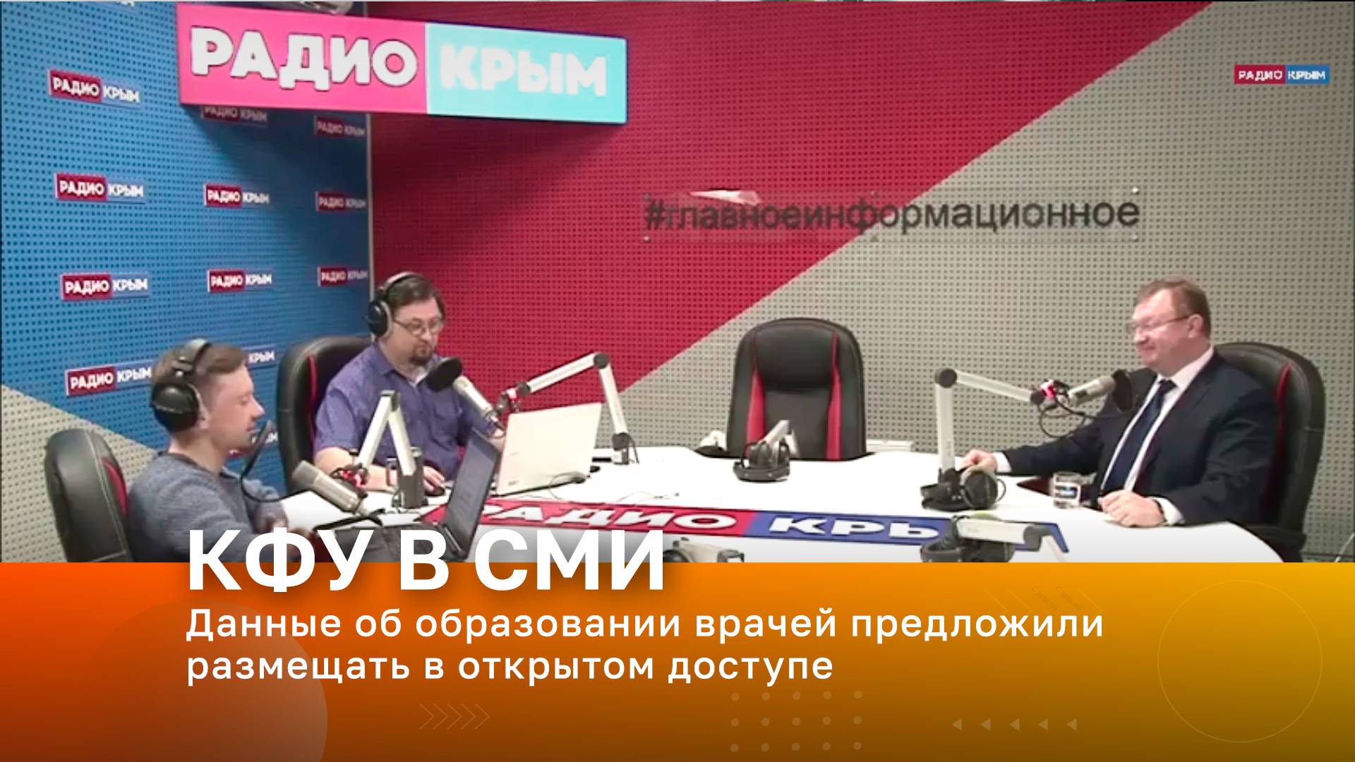 Радио «Крым». В эфире – директор Ордена Трудового Красного Знамени Медицинского института им. С.И. Георгиевского КФУ им. В.И. Вернадского Евгений Крутиков Тема эфира – Данные об образовании врачей предложили размещать в открытом доступе.