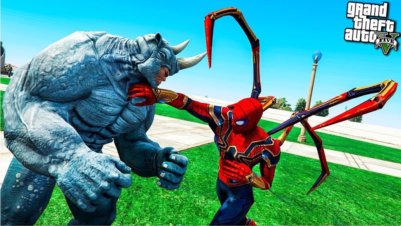 ЧЕЛОВЕК ПАУК ПРОТИВ НОСОРОГА RHINO В ГТА 5 МОДЫ! SPIDER-MAN ОБЗОР МОДА В GTA 5! ИГРЫ ВИДЕО MODS