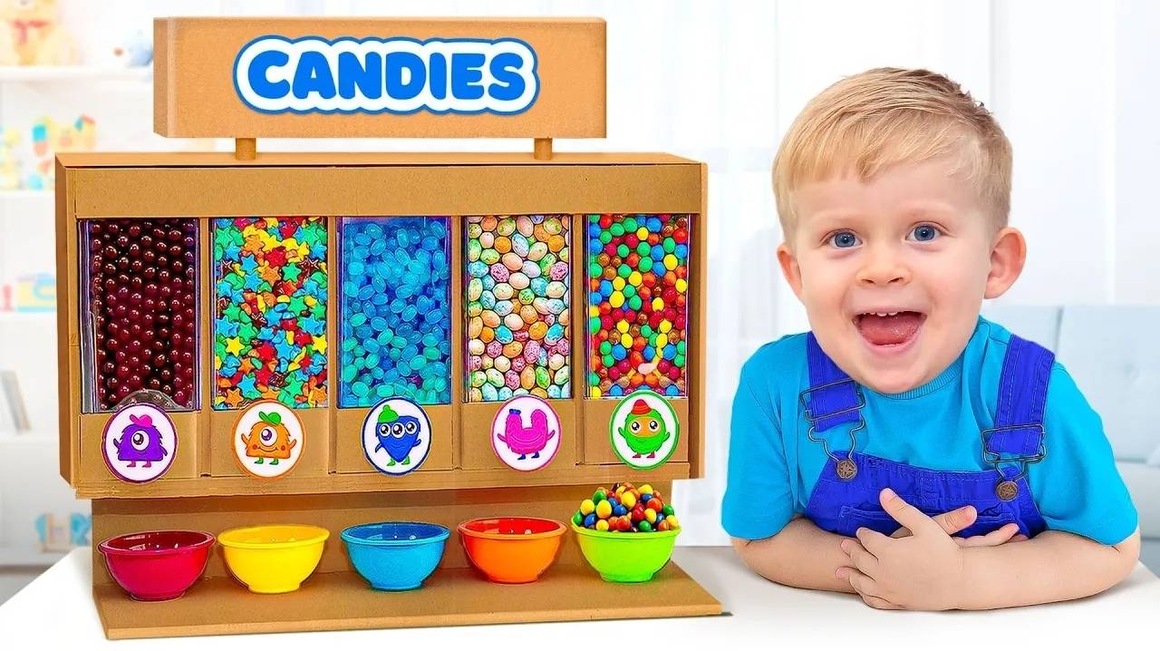 Оливер Учится помогать Маме играя с автоматом со Сладостями