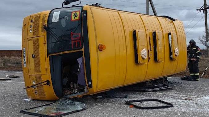 Школьный автобус разбился на трассе под Волгоградом: один ребенок погиб — кадры с места аварии