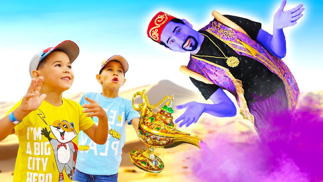 Дети нашли Волшебную лампу Аладдина в арабской пустыне. Сказочный Джинн исполняет 3 желания Эрика и Глеба. Дети загадали первое желание и очутились в парке развлечений Legoland water park. На второе желание дети очутились парке аттракционов для детей, где катались на каруселях, качелях и американских горках. На третье желание дети загадали выбраться из пустыни и очутиться дома. Веселое видео влог для детей. Семейное путешествие. #ErikShow #ЭрикШоу Все видео: http://bit.ly/2S6hA7T Пишите нам в: ► Likee: https://mobile.likee.video/k/326965234 ► Instagram: https://www.instagram.com/ErikShowTV/