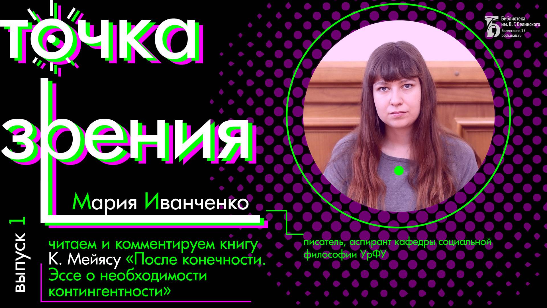 Выпуск онлайн-проекта «Точка зрения» посвящён современному французскому философу Квентину Мейясу и его разновидности концепции спекулятивного реализма и спекулятивного постгуманизма. Мы рассмотрим, что такое контингентность и хаотичность, почему контингентность единственная может полагаться основанием мира. Разберём, почему Мейясу не согласен с позицией корреляционизма и философией «привилегированного доступа». Спикер – Мария Иванченко, аспирант кафедры социальной философии УрФУ им. Б.Н. Ельцина, писатель. Камера, монтаж: Анна Порошина. Свердловская областная универсальная научная библиотека им. Белинского http://book.uraic.ru/ сайт https://vk.com/club6745014 VK