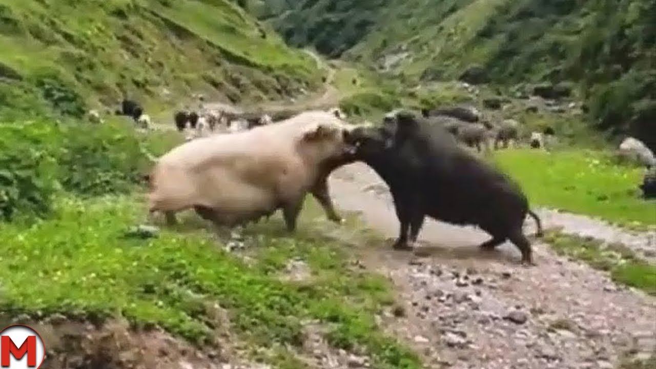 Свинья Атакукет Кабана! Схватки Животных Снятые на Камеру