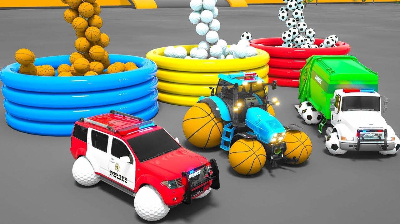 Мусоровозы, тракторы, полицейские машины и другие автомобили превращают колеса в шары