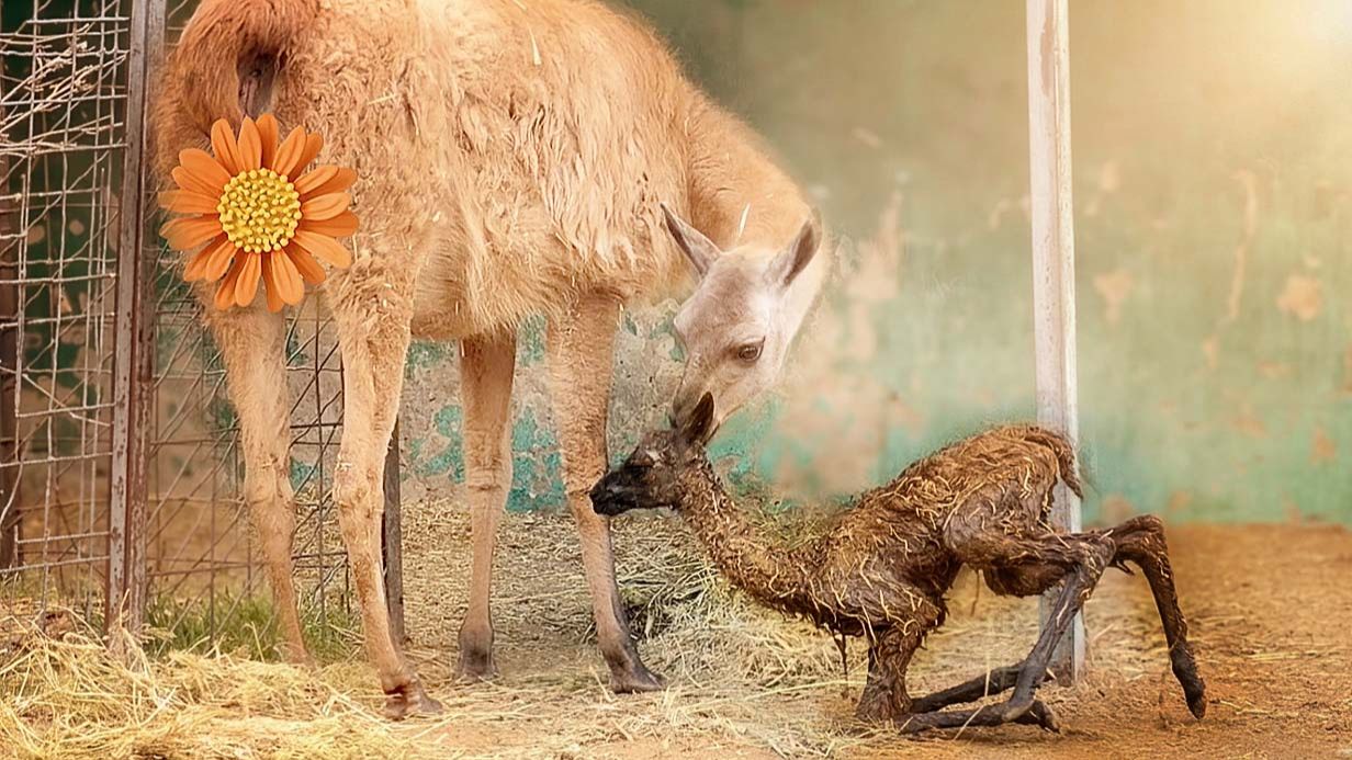 Только что РОДИЛСЯ! Встанет ли МАЛЫШ лама на ножки? Он ПАДАЕТ — кто ему ПОМОЖЕТ?