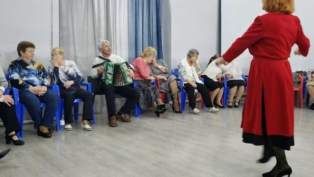 240128 Танец дамы в красном гармонь парк Женщина в красно-чёрной одежде танцует под гармошку г Орел
