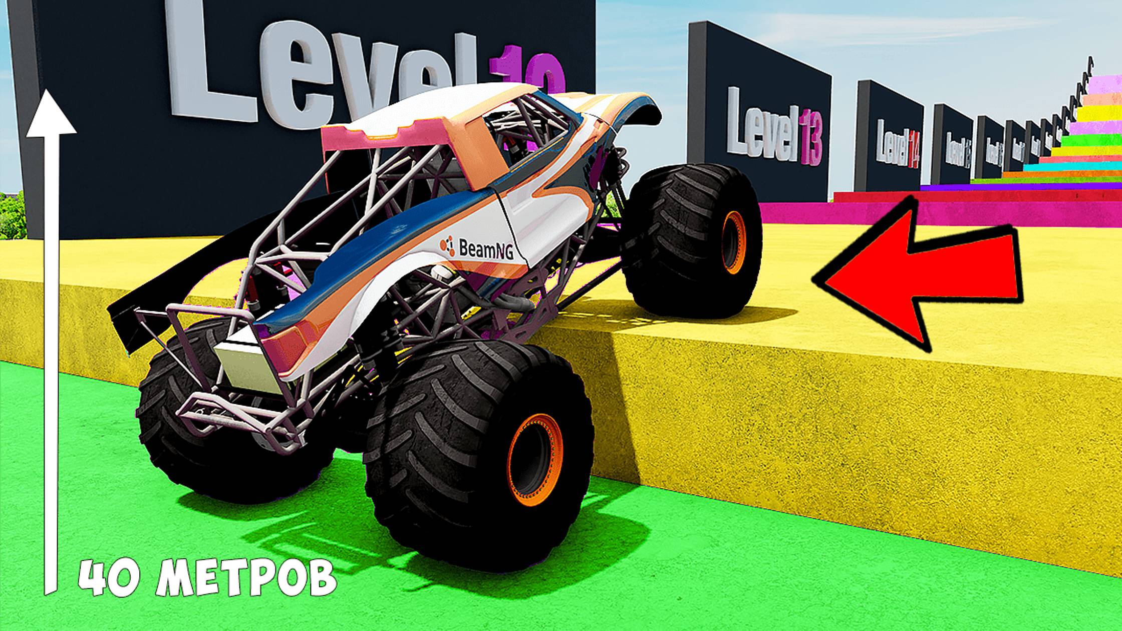 КАК ДАЛЕКО СМОЖЕТ ЧИТ МОНСТР ТРАК ЗАБРАТЬСЯ ПО СТУПЕНЬКАМ ЛЕСТНИЦЫ В BEAMNG DRIVE!