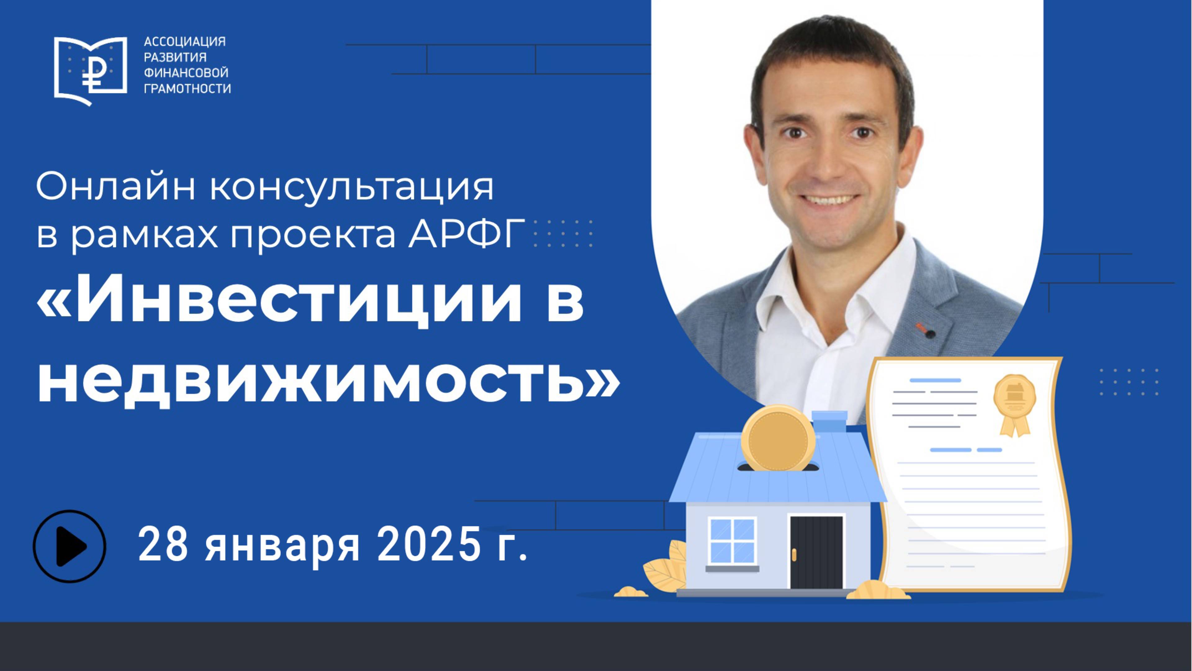В рамках просветительского проекта «Инвестиции в недвижимость» АРФГ БЕСПЛАТНО организует проведение онлайн-консультаций по следующим направлениям: - Инвестиции в недвижимость - Юридическая безопасность сделок с недвижимостью Консультации нацелены на разъяснения хитросплетений инвестиций в недвижимость и прав инвесторов в отдельно взятых ситуациях. Консультация будет полезна: финансовым консультантам; потенциальным и уже состоявшимся инвесторам; волонтерам финансового просвещения; риелторам и агентам по продаже недвижимости; тем, кто планирует продать или купить недвижимость, или хотя бы задумывается об этом; юристам.