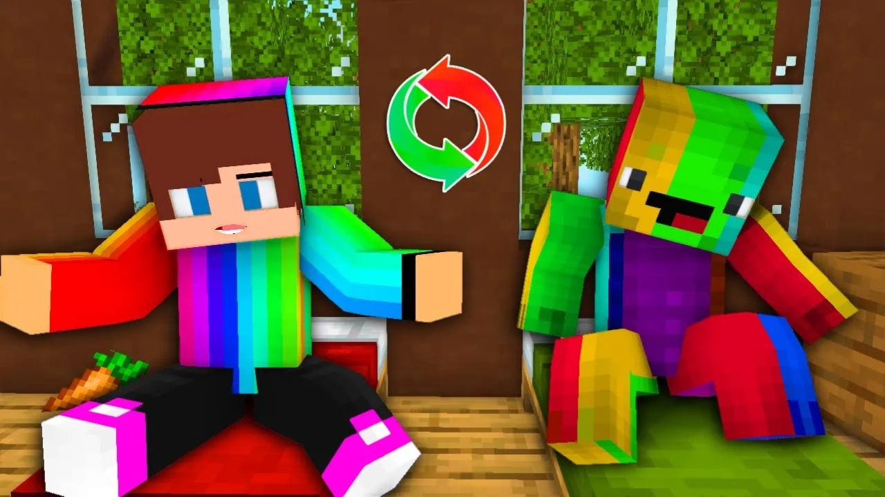 Джей Джей и Майки обмениваются разноцветными картинками. Майнкрафт Мультик