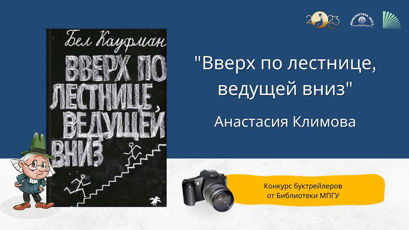 В мае 2023 года, в рамках Года педагога и наставника, Библиотека МПГУ проводит конкурс буктрейлеров "Наш друг Пишичитай: педагоги и наставники на страницах любимых книг". Анастасия Климова рассказывает о книге Бел Кауфман "Вверх по лестнице, ведущей вниз".