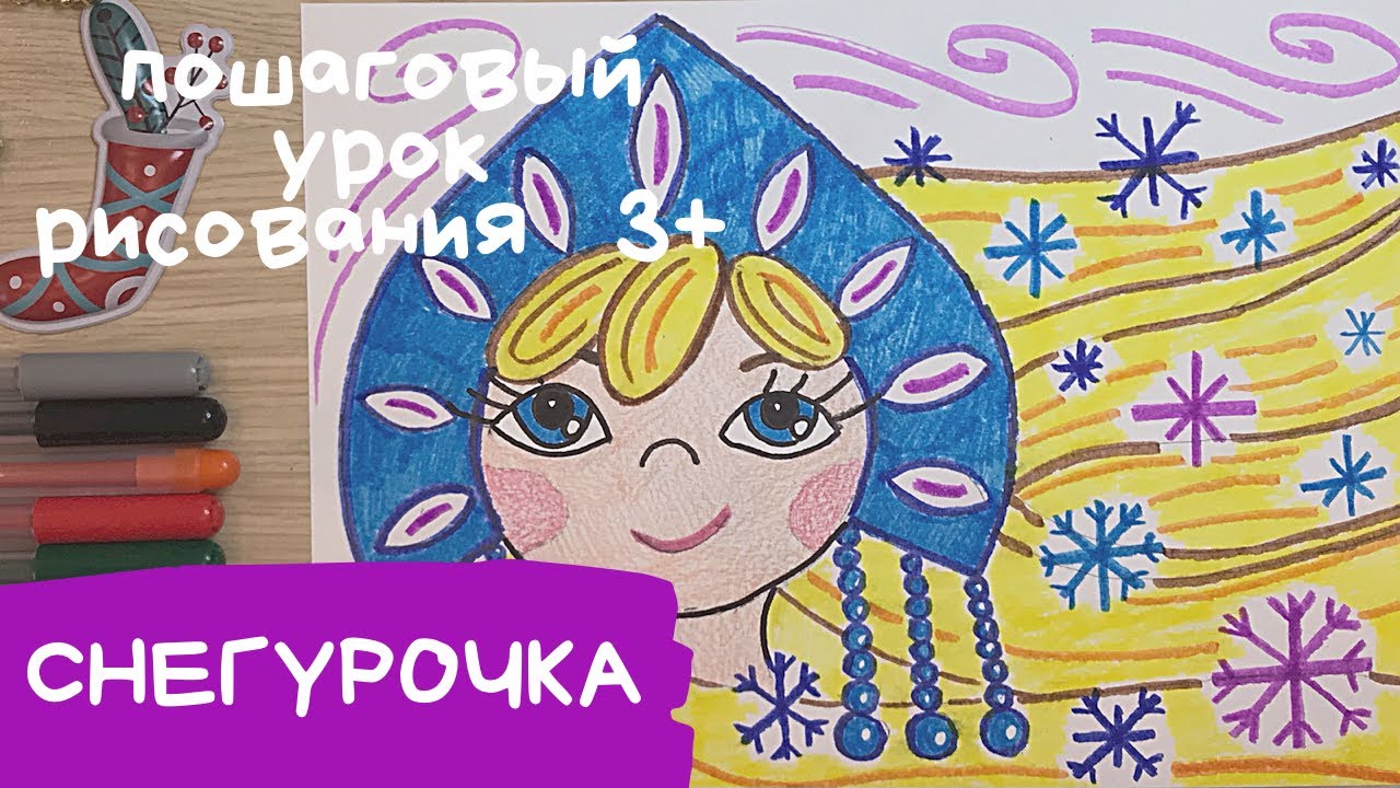 Снегурочка рисунок для детей Девочка зима рисунок Рисунки маркерами легкие Уроки рисования для детей