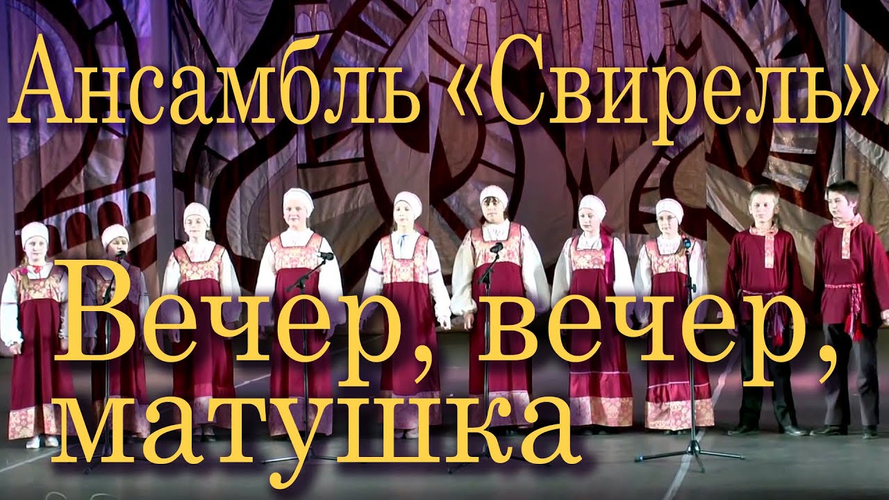 Вечер, вечер, матушка (русская народная песня). Детский образцовый ансамбль «Свирель» деревни Ямник Демянского района Новгородской области. Руководитель ансамбля Наталья Богданова, концертмейстер Александр Стригуль. Фрагмент XII открытого всероссийского фестиваля-конкурса детского и юношеского творчества «Золотая ладья-2015» (Великий Новгород, 9 января 2015 года). Видеосъёмка концерта: сайт «Ретропортал» https://www.retroportal.ru