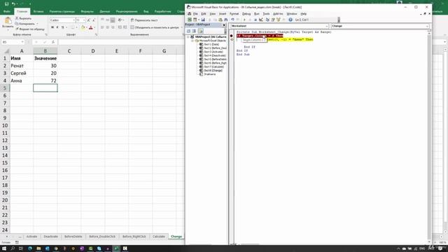 12 Событие Change с командой EnableEvents Избегание бесконечного цикла. Программирование макросов.
