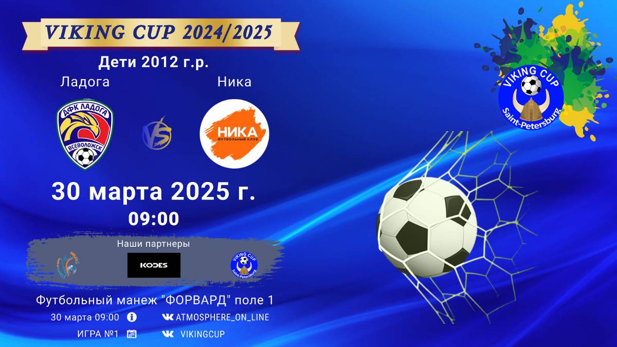 VIKING CUP среди команд 2012 г.р. (U13), Поле 1 30 марта 2025 САНКТ-ПЕТЕРБУРГ, ФЦ "Форвард" ФК "Ладога" - ФК "Ника"/VIKING CUP, Игра №1, 30-03-2025 09:00