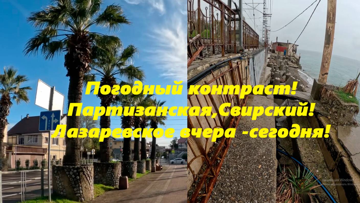 Погодный контраст! Ул. Партизанская и пляж "Свирский" Лазаревское вчера -сегодня!