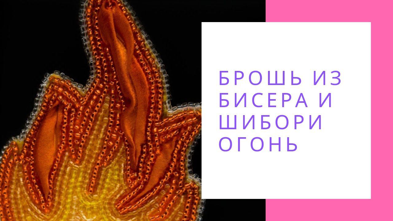 Брошь из бисера и шибори Огонь оранжевый желтый вышивка NataliaLuzik