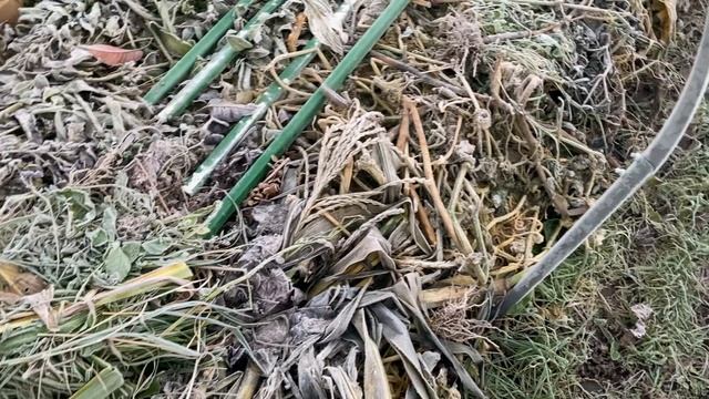 Прошли очередные ночные заморозки, занимаюсь органическим ( природным) земледелием, готовлю грядку для огурцов. Сверху земли заложила растительные остатки крупной фракции, теперь планирую это всё накрыть картоном.