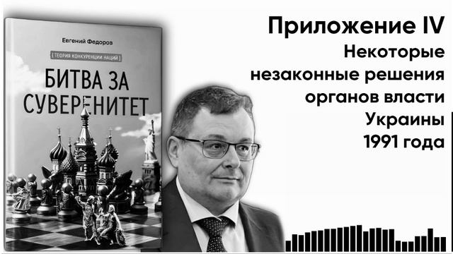 Аудиокнига "БИТВА ЗА СУВЕРЕНИТЕТ" Евгений Алексеевич Федоров Приложение IV. Некоторые незаконные решения органов власти Украины 1991 года. Конец аудиокниги. Приобрести книгу можно в интернет магазине Озон (https://www.ozon.ru/product/bitva-za-suverenitet-1479287829/) Тираж весьма ограничен (https://t.me/rvsn_na_washington/10596) @rvsn_na_washington
