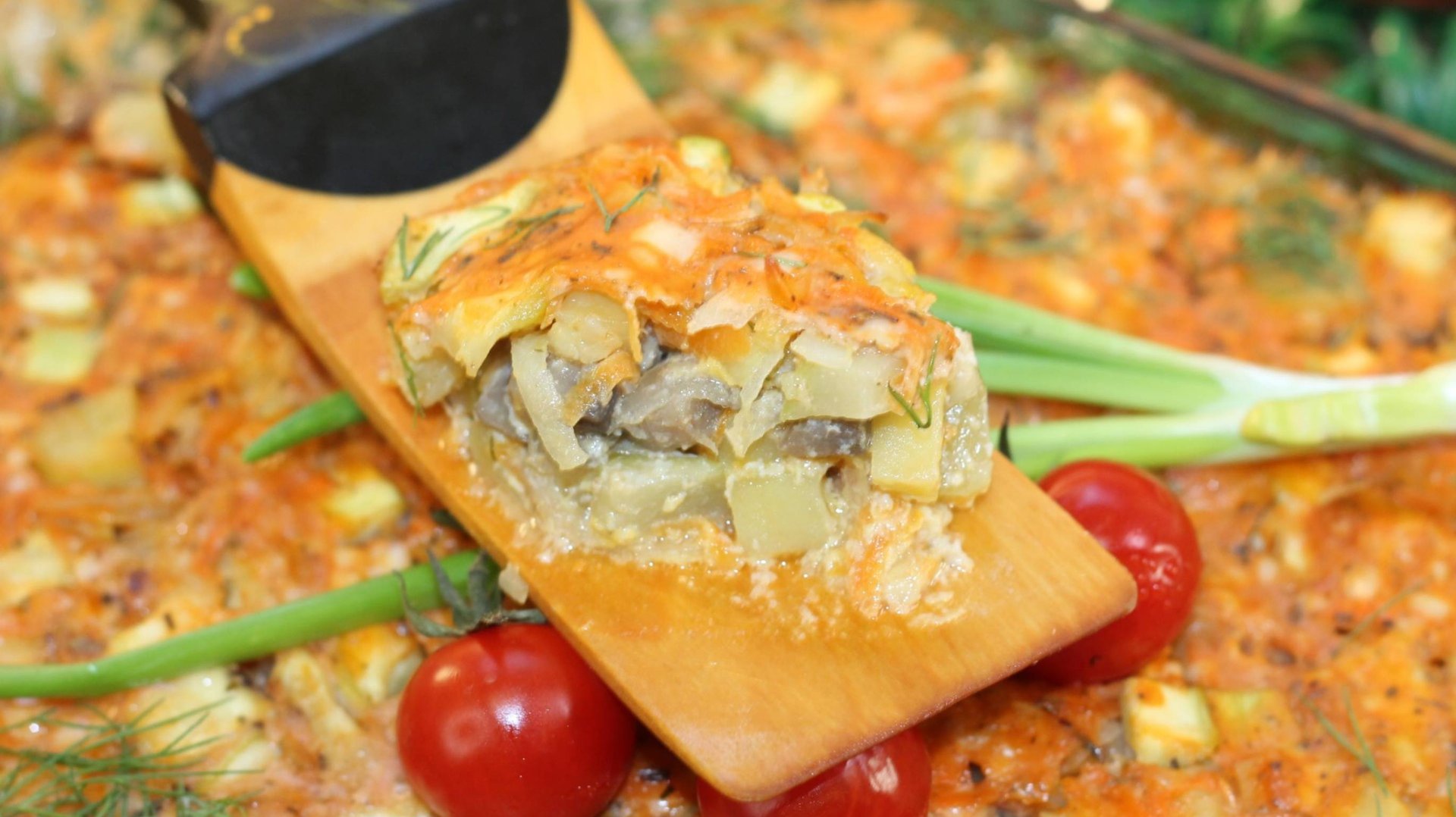 Сочная запеченная индейка с грибами на овощной подушке — это отличный источник белка без лишних калорий, а овощи и грибы дополнят индейку необходимой организму клетчаткой. Соус делают вкус продуктов ярче. Такое блюдо, я рекомендую подать на пикнике с питой. Разрезаем питу на 2 части, заполняем овощами с мясной начинкой, разогреваем и подаем! - Ингредиенты для «Индейка с грибами на овощной подушке»: Филе (бедра индейки или курицы) — 250 г Лук репчатый (90 г) — 1 шт Кабачок (720 г) — 2 шт Картофель (180 г) — 2 шт Морковь (140 г) — 1 шт Яйцо куриное (70 г) — 1 шт Шампиньоны — 220 г Сметана — 1 ст. л. Сыр плавленый (мягкий) — 1 ст. л. Томатная паста (или кетчуп томатный - 2 ст.л.) — 1 ст. л. Масло растительное — 6 ст. л. Крахмал (любой) — 1 ч. л. Приправа (паприка сладкая, прованские травы) — 1 ч. л. Укроп — 2 веточ. Специи (у меня "вкусная соль" - соль смешанная с сухими пряными травами, чесноком и перцем) Время приготовления: 100 минут Количество порций: 6