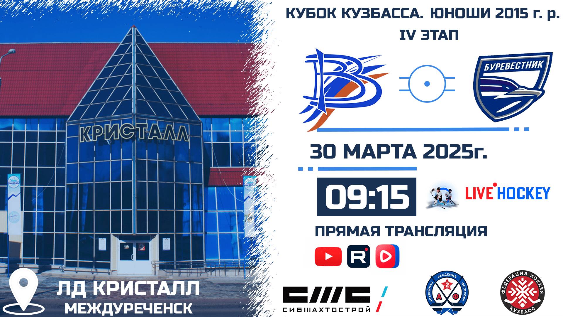 ПРЯМАЯ ТРАНСЛЯЦИЯ МАТЧА 30.03.2025г. в 9:15 ВЫМПЕЛ (Междуреченск) VS БУРЕВЕСТНИК (Томск) КУБОК КУЗБАССА СРЕДИ ЮНОШЕЙ 2015 г.р. ССЫЛКИ НА МАТЧИ: https://bit.ly/TYTCLICK СТАДИОН: ЛД КРИСТАЛЛ КОММЕНТАТОРЫ: ТРАНСЛЯЦИЯ НА YOUTUBE: https://youtube.com/live/dieFvEY1yvg?feature=share ТРАНСЛЯЦИЯ В СООБЩЕСТВЕ VK: https://vkvideo.ru/video-229078074_456239231