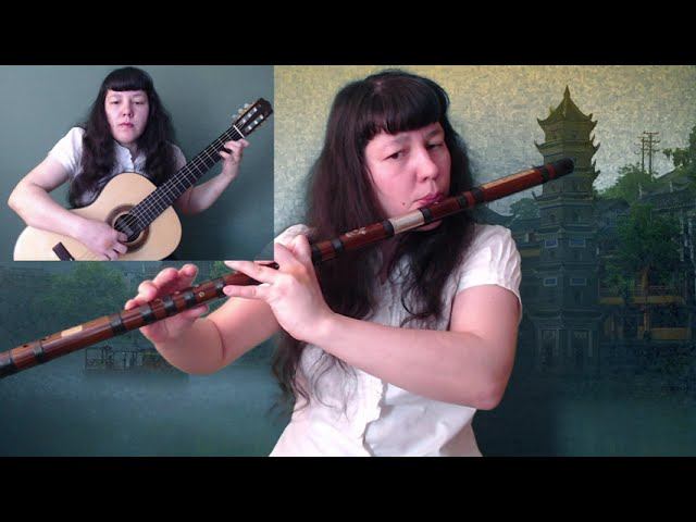Кавер композиции Jay Chou на китайской бамбуковой флейте dizi Bass key G и классической гитаре