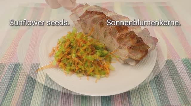 Поддержите пожалуйста канал, мы очень сильно стараемся для Вас , что бы Вам было интересно , реквизиты ниже в описании . Спасибо . СБЕР. 2202 2032 4086 8523 ТИНЬКОФФ 2200 7007 3056 0918 Мясо 1кг. Лук 2-3 шт. Бекон 2-3 ломтика. Соль 1,5 ч.л. Черный перец 1 ч. л. Орегано 1 чайная ложка роземанин 1 чайная ложка паприка 1 чайная ложка Кориандр 1 чайная ложка Мускатный орех 1/2 ч.л. Завернуть в пергамент и фольгу. Выпекать при 200°C 60 минут. Снимите фольгу. Выпекать при 220С 10 минут. 2 палочки сельдерея морковь 1 шт. Огурец 2 шт. Кориандр. Масло обивочное 2 ст.л. цельнозерновая горчица 1 ч.л. сок лайма 1 чайная ложка Чеснок 1-2 зубчика. Соль. Черный перец. сахар 1 чайная ложка семена подсолнечника. Спасибо за ваше время! До встречи в следующем рецепте! Приятного аппетита!