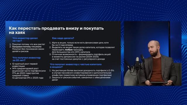 Как перестать покупать акции на максимумах и продавать на минимумах? Что нужно сделать, чтобы инвестиции стали действительно прибыльными? Секреты в инвестициях от Александра Сайганова, руководителя отдела аналитики инвестиционного сервиса Invest Heroes. Модератор: Всеволод Зубов, руководитель департамента автоследования БКС. Полезные ссылки: Откройте счет в БКС: https://s.bcs.ru/zE65J Telegram-канал БКС Экспресс: https://t.me/+7Df0e7F82Ds5MGEy Telegram-канал БКС Мир инвестиций: https://t.me/+St601Uv_LL9hNmYy Таймкоды: 00:00 Скоро начнем 00:15 Вступление 00:45 Кто такой Александр Сайганов? 02:10 Как относиться к «черным лебедям» на рынке? 04:30 О рынке и том, что на нем покупать 07:05 Как перестать покупать на максимумах и покупать на минимумах? 11:50 О ситуации с ценами на золото и серебро 15:10 Как купить идею, а не уже выросшие бумаги? 17:20 Что нужно делать, чтобы не покупать на хаях? 20:10 Как переходить из инвестиций из одной компании в другую? 25:10 Про горизонт инвестирования 26:00 Какую долю капитала вкладывать в акции? 27:10 Когда формировать портфель? 28:30 Какие цели? 29:40 Про ребалансирование портфеля 31:00 Стоит ли покупать IPO-акции? 33:20 Про манию в металлах 37:40 Топ-идеи на 2026 от Александра 42:50 Мнение по фарме 43:40 Про МТС Банк 44:30 Про шорты 45:30 Про курс доллара 47:20 Что по секторам? 48:30 Про «Евротранс» 49:55 Заключение #бкс #инвестиции #акции