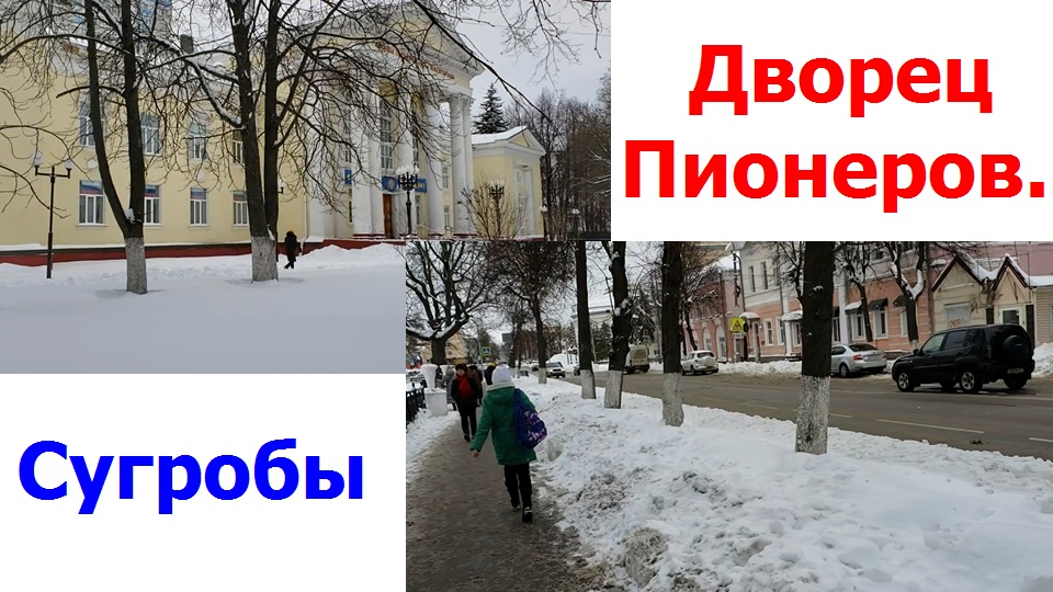 231216 Дворец Пионеров сугробы Ёлки снег тротуар улица Салтыкова-Щедрина на крыше опасно город Орёл