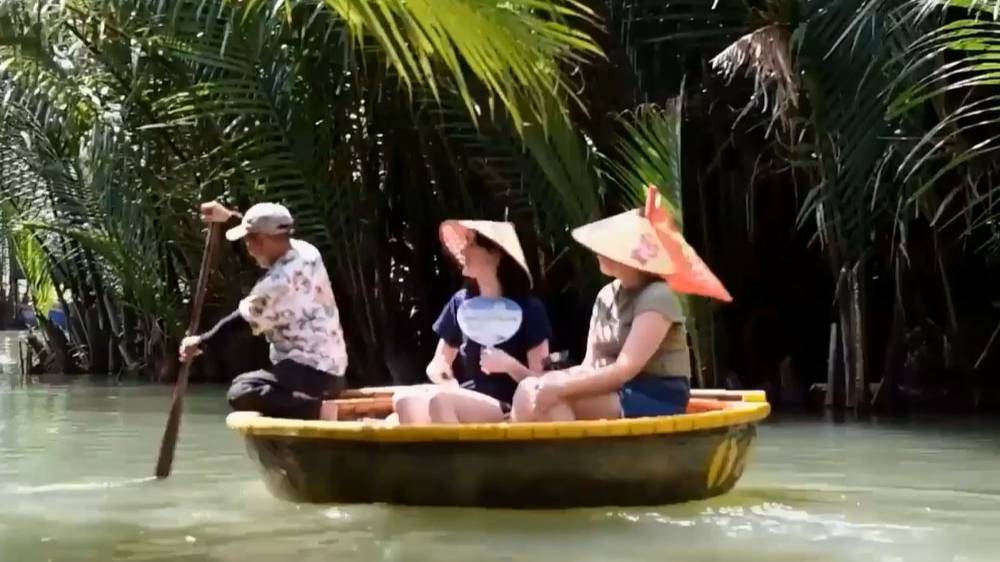 Вьетнамская деревня Кам Тхань пользуется популярностью у туристов благодаря своим живописным пейзажам и уникальной возможности прокатиться на лодках-корзинах по реке, окруженной кокосовыми рощами. На кадрах путешественники плывут на традиционных круглых бамбуковых лодках под руководством местных гребцов. В 2025 году издание Forbes признало Кам Тхань одной из 50 самых красивых деревень мира, присвоив ей 20-е место в рейтинге. Рост числа туристов стал следствием популярности этого маршрута.