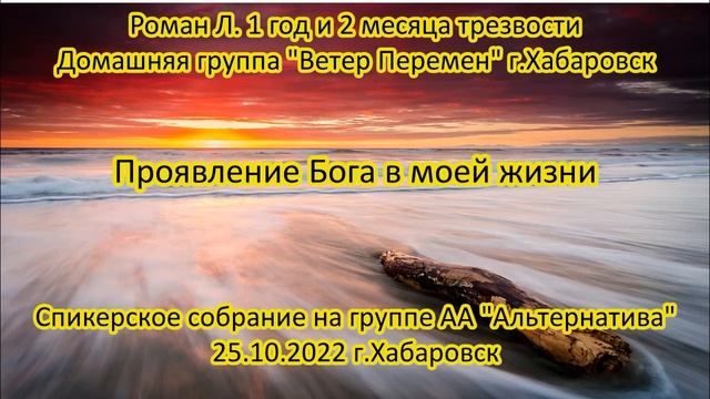 Рома Л. Проявление Бога в моей жизни. 1 год и 2 м.тр.вр. д.гр АА "Ветер Перемен", Хаб-вск, 25.10.22