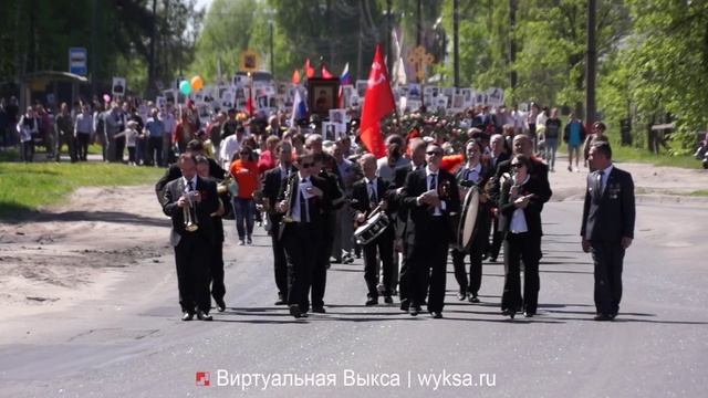 http://wyksa.ru/2016/05/10/vyksa-bessmertnyi-polk-video.html 9 мая по улицам Выксы прошло шествие «Бессмертный полк». С каждым годом эта акция в нашем городе обретает все больший масштаб. В этот раз она собрала около 7000 человек. В число участников акции вошли руководители организаций и предприятий Выксы, ветераны городского округа, учащиеся средних образовательных учреждений. С портретами своих родных и близких - фронтовиков и тех, кто трудился для Победы в тылу, выксунцы прошли по улицам города, чтобы ещё раз отдать дань памяти и уважения каждому земляку, кто не жалея своей жизни, боролся за освобождение Родины. Участники акции прошествовали от здания администрации городского округа город Выкса до Северного кладбища, перед входом в которое состоялся митинг памяти.