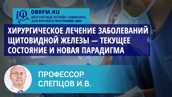 Видеозапись онлайн-семинара "Хирургическое лечение заболеваний щитовидной железы" О семинаре: При лечении заболеваний щитовидной железы нередко используются хирургические вмешательства. Несмотря на значительный прогресс в техническом обеспечении, уровень послеоперационных осложнений остается высоким. Ведущие мировые клиники сообщают о развитии нарушений проводимости гортанных нервов у 3-10% пациентов. Нарушение функции околощитовидных желез, по данным исследований последних лет, встречается в 5-50% случаев полного удаления щитовидной железы. Со времен Теодора Кохера методика операции на щитовидной железе сохраняется во многом неизменной. Анализ принципов данного вмешательства с точки зрения анатомического строения щитовидной железы выявляет ряд недостатков традиционного подхода: высокий риск натяжения и травмирования возвратного гортанного нерва, высокий риск повреждения наружной ветви верхнего гортанного нерва, риск повреждения питающих околощитовидные железы сосудов. Без изменения базовых принципов проведения операций на щитовидной железе вероятность радикального снижения числа осложнений представляется маловероятной. В последние годы в клинике Северо-Западного центра эндокринологии и эндокринной хирургии внедрены методики медиальной тиреоидэктомии (тиреоидэктомии без натяжения, TFT, tension-free thyroidectomy) и тимус-сохраняющей центральной шейной лимфодиссекции. Результаты применения данных методов свидетельствуют об их высокой безопасности, с одновременным сохранением эффективности. Оба метода используются в настоящее время не только в разных городах России, но и в Германии, Австрии, Швейцарии. Докладчик: Илья Валерьевич Слепцов Главный специалист по эндокринологии и эндокринной хирургии Клиники высоких медицинских технологий им. Н.И. Пирогова СПбГУ, хирург-эндокринолог, онколог, детский хирург, доктор медицинских наук Дата проведения: 28.09.22 в 20:00 мск Организатор: Образовательный центр Фармамед.РФ - один из крупнейших образовательных порталов в России. Бесплатные онлайн-семинары в программе НМО. Ссылки: Ссылка на видео: https://youtu.be/OoCXk5kSUW4 Канал Образовательного центра Фармамед.РФ: https://www.youtube.com/channel/UCJTFAPBD3dZ3PugMTcB5xqg Сайт Образовательного центра Фармамед.РФ : https://obrfm.ru Мы на Rutube: https://rutube.ru/channel/24964912/ Подпишитесь на нас ВКонтакте (здесь публикуются ежедневные анонсы мероприятий): https://vk.com/obrfm Уважаемые коллеги! Создайте Личный кабинет на сайте Образовательного центра Фармамед, чтобы: 1. Получать баллы программы НМО за участие в прямых трансляциях онлайн-семинаров 2. Иметь доступ к видео-архиву онлайн-семинаров 3. Видеть программу предстоящих трансляций