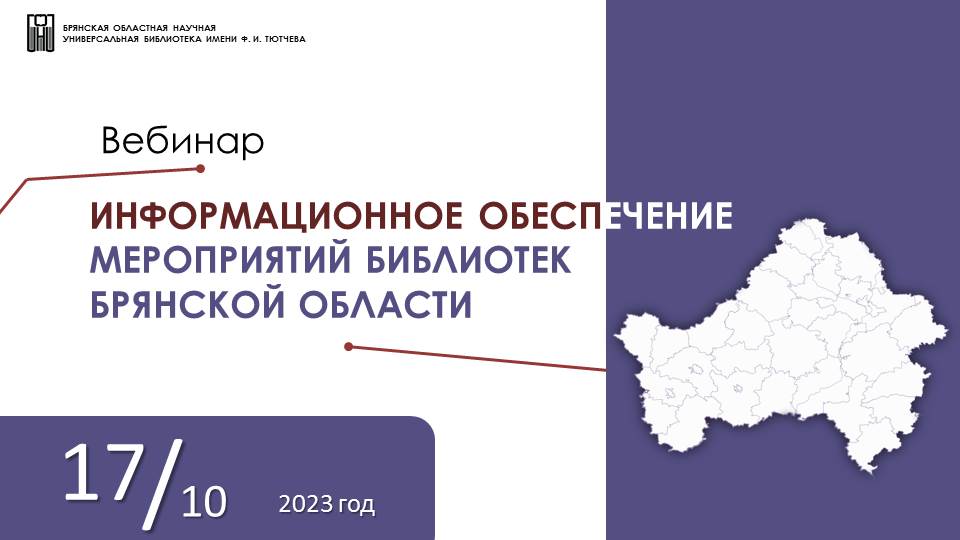 Открытие вебинара "Информационное обеспечение мероприятий библиотек Брянской области". (17 октября 2023 г.)