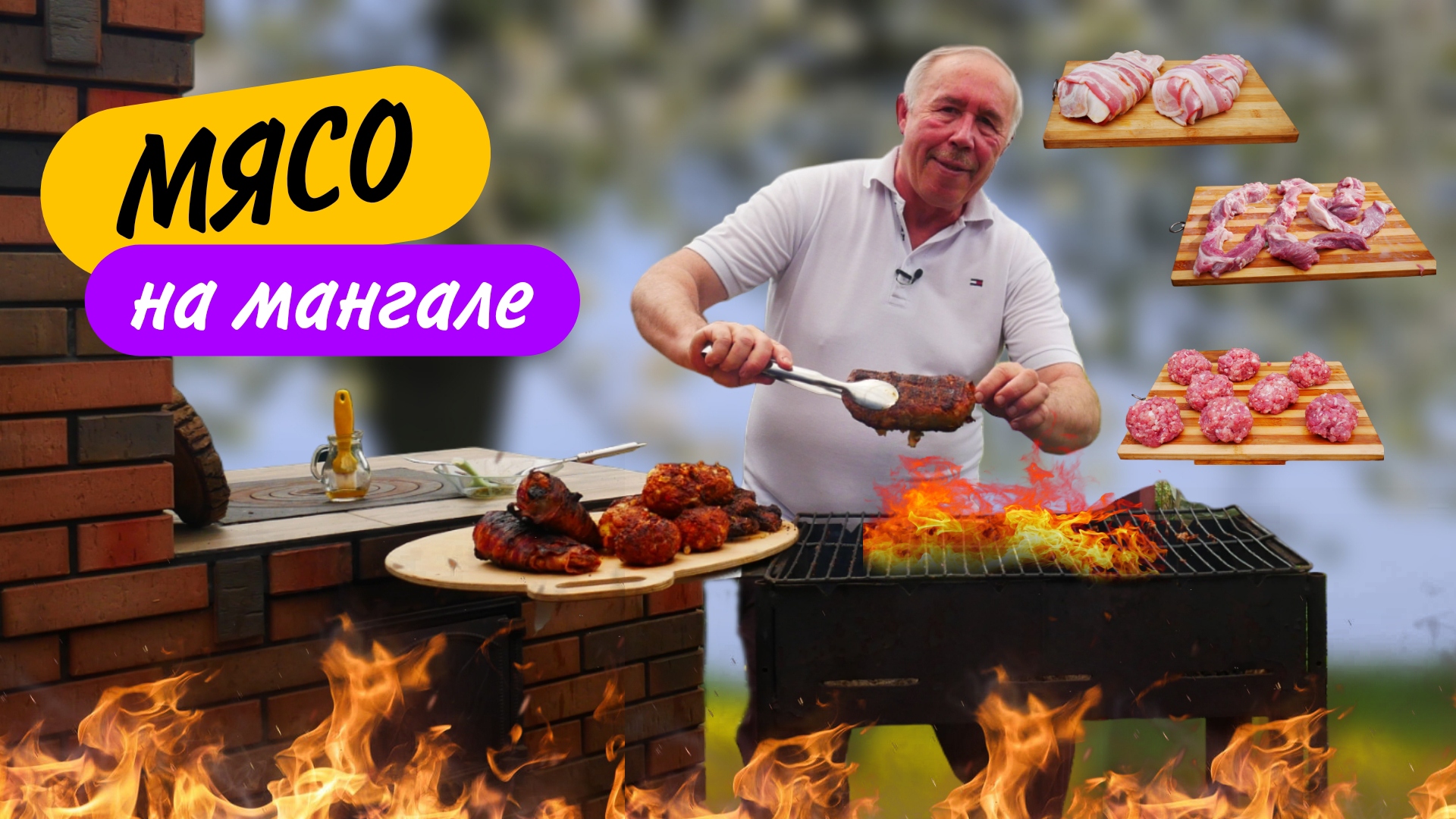 дед мясоед Готовим и показываем как приготовить сочное мясо на углях - набор рецептов к летнему сезону. Если Вам надоели обычные шашлыки, мы предлагаем, простые, но вкусные варианты мяса на углях из свинины и курицы. Выбирайте и пользуйтесь на здоровье. Если Вам понравилось блюдо - ставьте лайк и подписывайтесь на мой кулинарный канал!!! ИНГРЕДИЕНТЫ: ФАРШИРОВАННАЯ СВИНАЯ ОТБИВНАЯ: свиной карбонат - 1.500 грамм соль, перец, чеснок, свиная ветчина, сыр, жировая сетка. КУРИЦА ПОД СЫРОМ: бедрышки бескостные - 8 шт. МАРИНАД: соль, перец, чеснок, масло раст. - 3 стол/лож. сыр, ветчина куриная, жировая сетка. МЯСО ПО - АРГЕНТИНСКИ: свиная шея - стэйки, молоко МАРИНАД: розмарин, тимьян, орегано, эстрагон, паприка - все по 1 чай/лож., соль, перец, чеснок. масло растительное. КУРИНАЯ ГРУДКА С ЧЕРНОСЛИВОМ: куриная грудка - 4 половинок. чернослив, маринад: как на мясо по - Аргентиски. полоски подкопчённого бекона. МЯСНЫЕ ФАНТАЗИИ: фарш свиной, соль, нарезка - бекона, сыра - квадратиком. панировка - хлопья перца Чили, перец черный, паприка, чеснок.мясо на углях #дед #мясоед #мясонауглях #шашлыкна мангале #кулинария #еда #рутуб