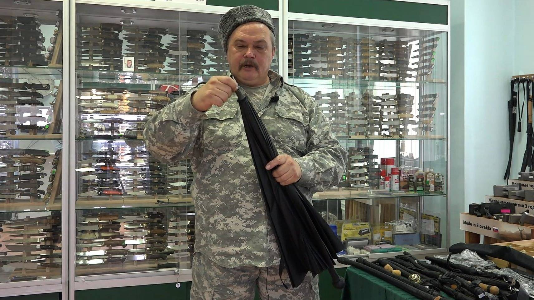 Александр Дегтярев в магазине "Русские Ножи" рассказывает про особенности своего зонта
