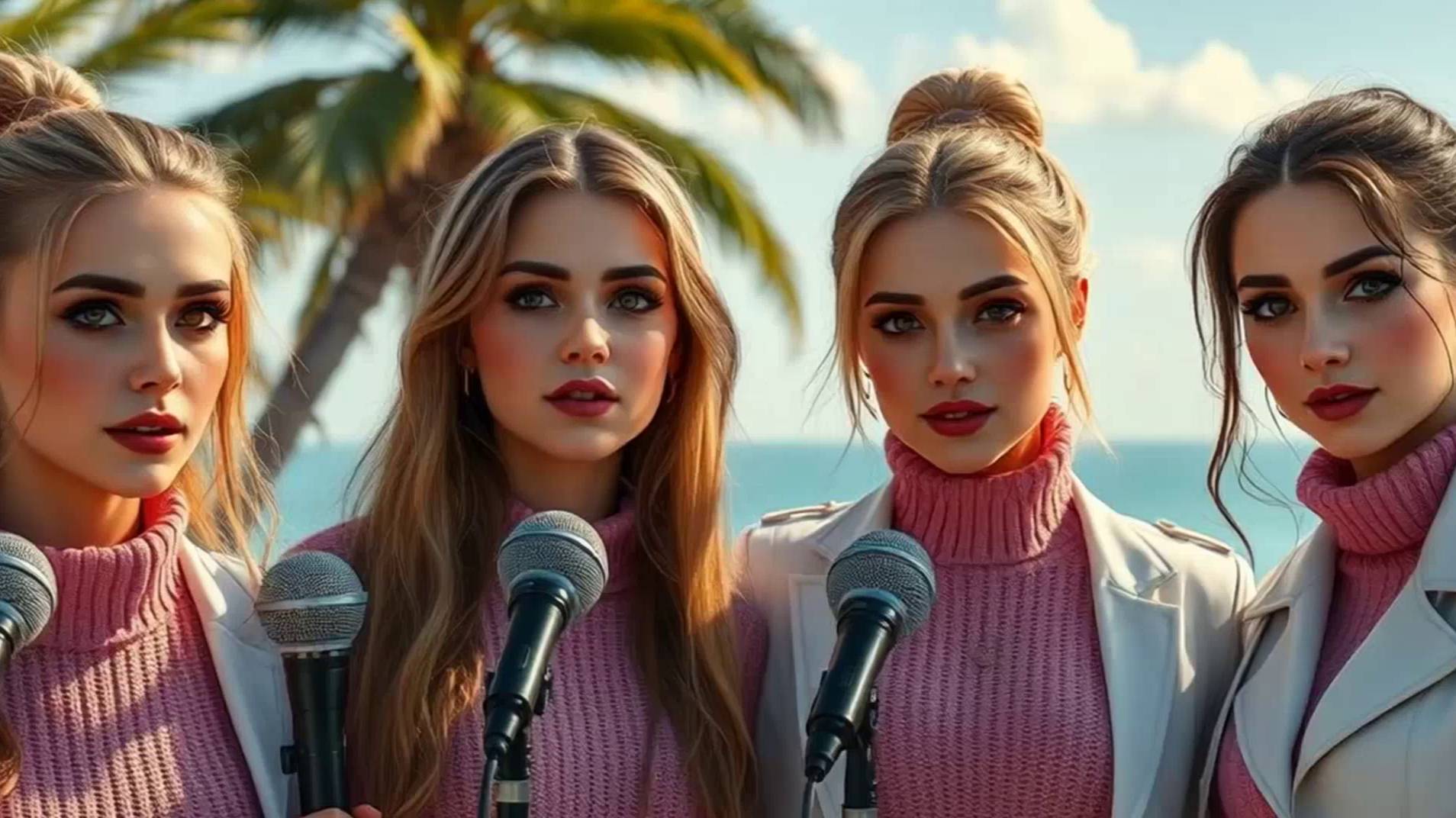 Сгенерированное видео: Четыре девушки на море. Песня