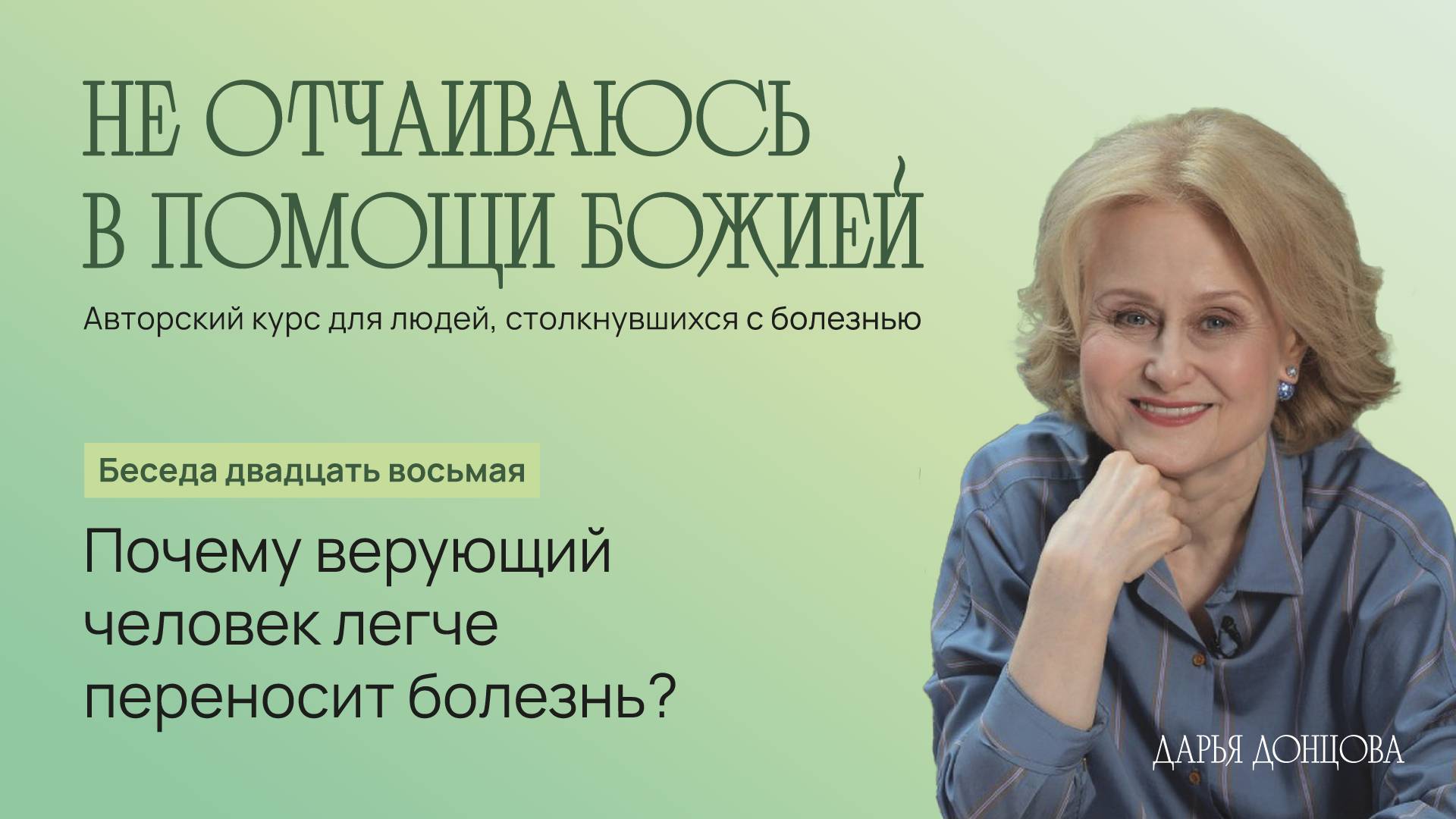 Дарья Донцова Не отчаиваюсь в помощи Божией 3.28. "Почему верующий человек легче переносит болезнь?"