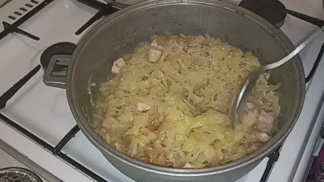 Тушёная квашеная капуста с копчёным мясом