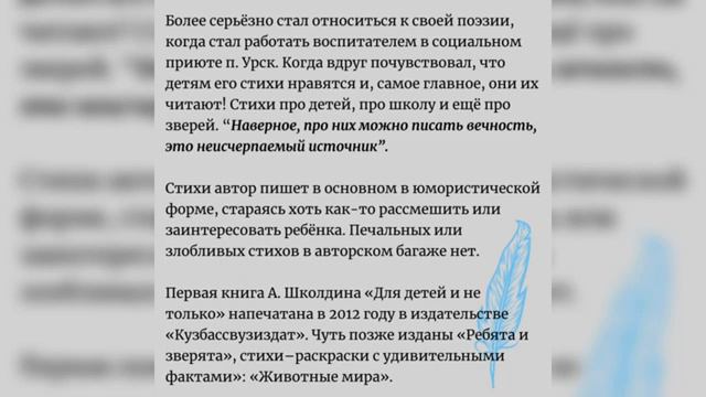 Писатели Кузбасса детям. Школдин А. В.