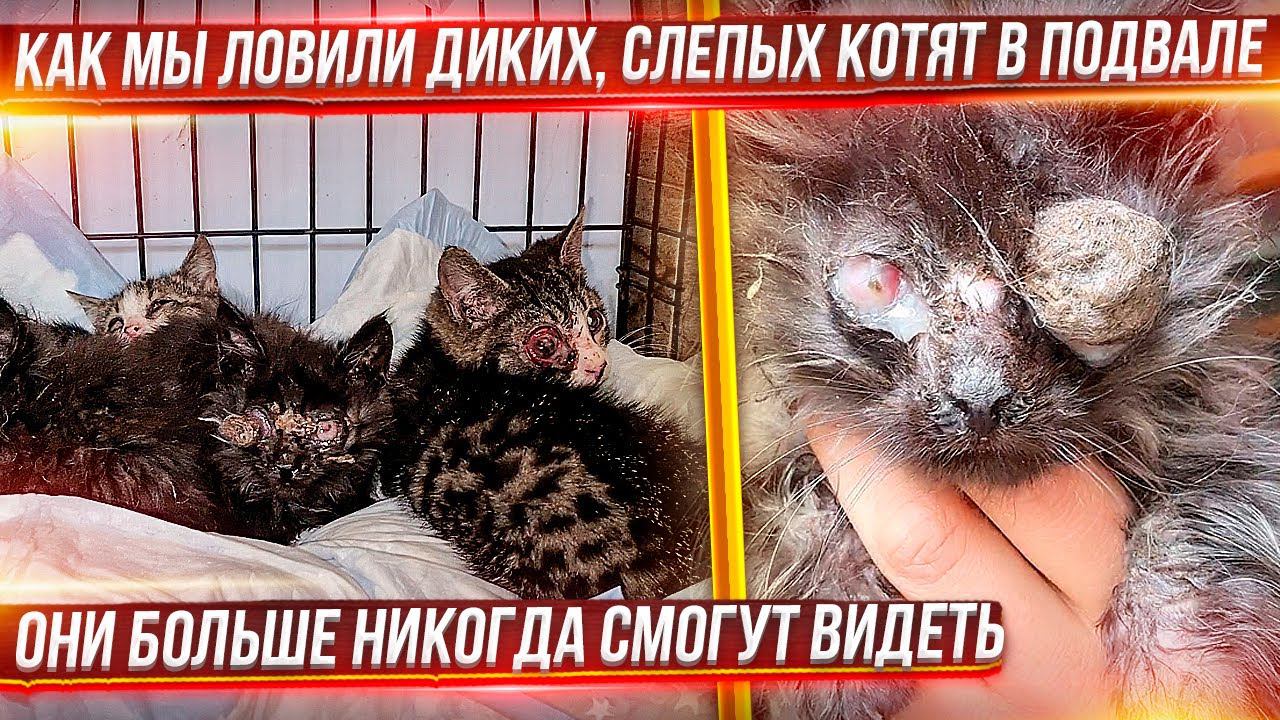 Я в ужасе. Котята уже никогда не смогут видеть. Вирус съел их глаза. Спасение слепых котят с подвала